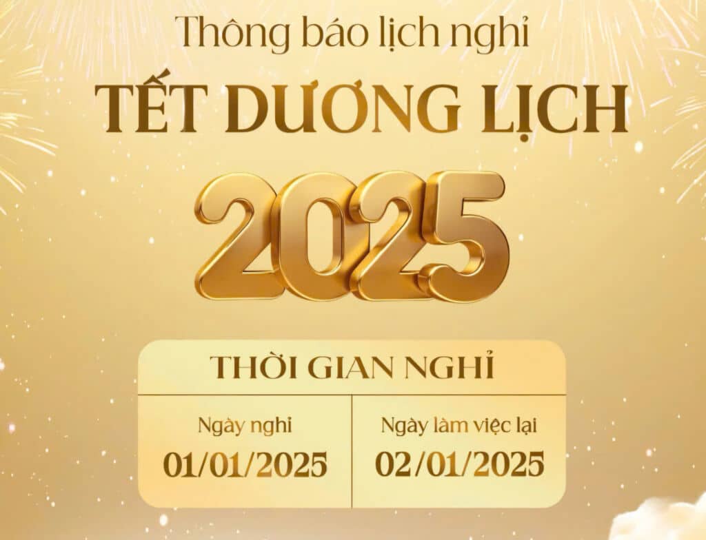 Nhằm đảm bảo sự thuận tiện cho Quý khách hàng và đối tác trong việc giao dịch, chúng tôi xin trân trọng thông báo lịch nghỉ Tết Dương lịch 2025 như sau: